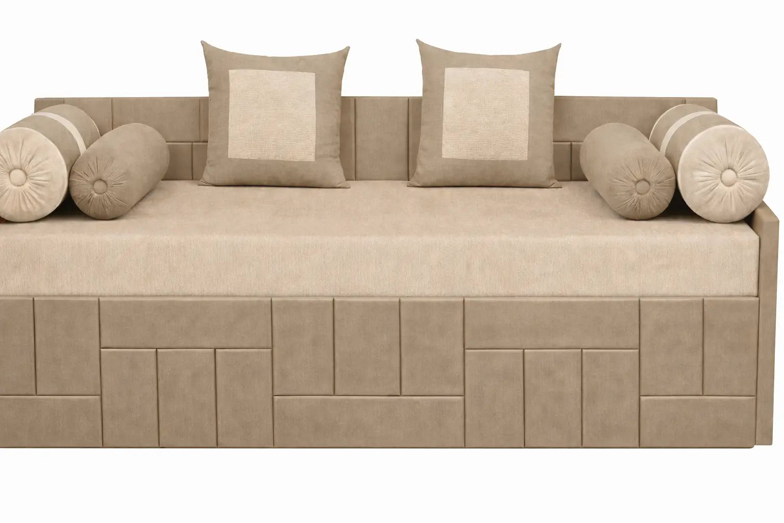 • Sofa cum Bed with seat cushions, small cushions and bolsters.
