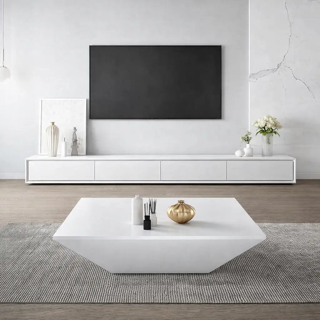 Spice up your living room with this modern tasteful TV Unit & coffee table combo. The units strikes an square clean-lined silhouette to take your decor to the next level in charm. Bring this elegant piece home!